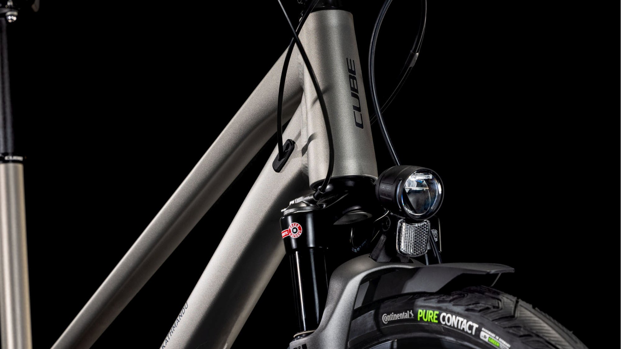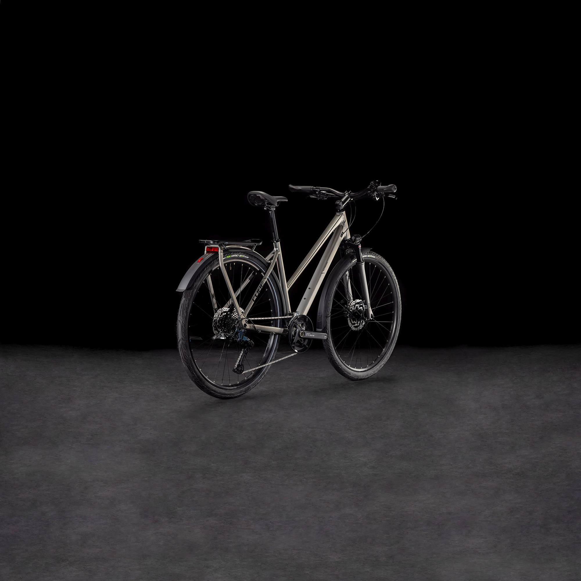 From zipping across town to tackling mountain passes you’ve never ridden before, the Kathmandu EXC from CUBE is designed to get you there – and back – in comfort and style. We chose Shimano’s Cues 2×11 gears for their ease of use and reliability. Then we added powerful Shimano hydraulic disc brakes and Continental’s Pure Contact tyres made from sustainably sourced rubber, so you know you’re in full control at all times. Finally, we selected an easily adjustable Suntour air suspension fork to take the edge off rough road surfaces. With our Integrated Carrier 3.0 and a full complement of accessories – including mudguards, kickstand and lights – you’ve everything you need. Just jump on and go.