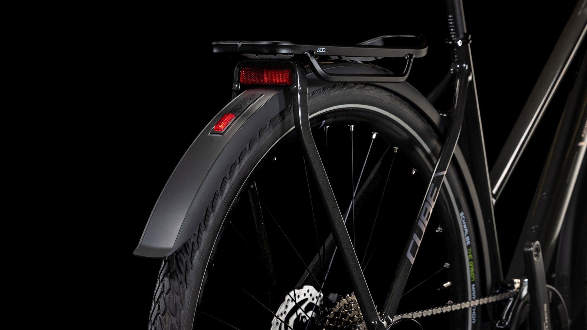 CUBE design expertise is the name of the game for the Kathmandu’s Trapeze frame. Its Integrated Carrier 3.0 is designed to work seamlessly with our ACID mudguard. We’ve fitted a flat mount for the rear disc brake – it also accommodates the kickstand – and used Smooth Welding to give the frame joints a tidy, organic appearance. But it’s not all about looks. We also equipped the rear end with a thru axle and added a tapered head tube for improved rigidity and steering precision, even when fully laden. With Internal Cable Routing to keep your gear shifts smooth with minimal maintenance, we reckon we’ve thought of everything. Just don’t forget your toothbrush.