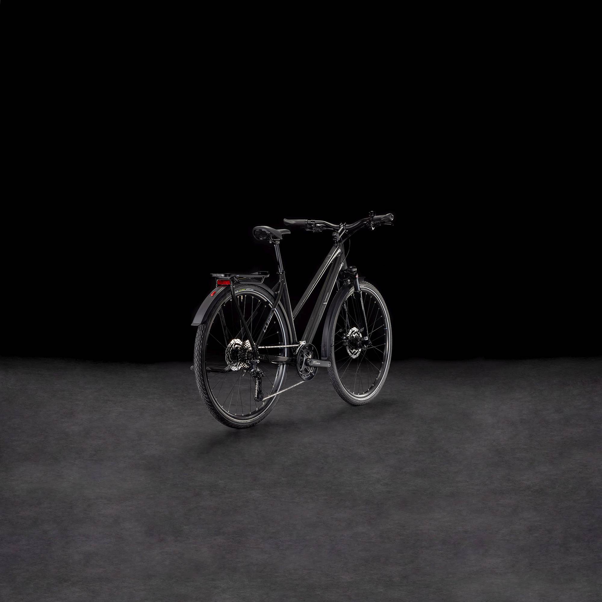 CUBE’s designers ensured the Kathmandu Pro to have everything you need and nothing that you don’t. From the elegant simplicity of the Integrated Carrier to the full-length mudguards, front and rear lights and CUBE FM kickstand, it’s the practical everyday companion that’s rugged enough to take on longer trips, too. A Suntour air suspension fork makes even the roughest roads smoother, for a more comfortable ride. Schwalbe tyres use recycled rubber, to reduce their environmental impact. Shimano’s Cues 2×10 gears give you the range you need to make light work of any route. And Shimano hydraulic disc brakes ensure you can always stop safely, no matter what you’re carrying or what the weather is throwing your way. Urban jungle or distant horizon, the Kathmandu Pro has got your back.